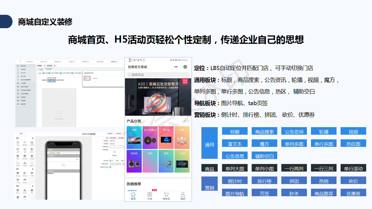 新零售系統(tǒng)可分為前臺(tái)與后臺(tái)管理兩個(gè)部分,其中,前臺(tái)主要是為消費(fèi)者提供購物展示服務(wù),后臺(tái)是幫助企業(yè)實(shí)現(xiàn)對(duì)整個(gè)商城的運(yùn)營(yíng)管理。一般新零售系統(tǒng)具備的基礎(chǔ)功能包括商品管理、訂單管理、店鋪管理、消息管理、會(huì)員管理、系統(tǒng)管理等,而功能是否完善、實(shí)用、簡(jiǎn)便是對(duì)商城系統(tǒng)最大的考驗(yàn)。